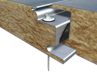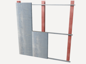 Fachada de paneles sándwich de acero galvanizado, de 50 mm de espesor y 1150 mm de ancho, formados por cara exterior de chapa microgrecada acabado prelacado, con resistencia media a la corrosión y con resistencia baja a los rayos UV, de 0,5 mm de espesor, alma aislante de lana de roca de densidad media 120 kg/m³, y cara interior de chapa nervada acabado prelacado, de 0,5 mm de espesor, conductividad térmica 0,69 W/(mK), Euroclase A2-s1, d0 de reacción al fuego, resistencia al fuego EI 30, colocados en posición vertical y fijados mecánicamente con sistema de fijación oculta a una estructura portante o auxiliar. Incluso accesorios de fijación de los paneles y cinta flexible de butilo, adhesiva por ambas caras, para el sellado de estanqueidad de los solapes entre paneles sándwich. |