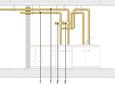 Instalación interior de plomería para cocina con dotación para: pileta de cocina, toma y llave de paso para lavavajillas, realizada con tubo de polietileno reticulado (PE-X), para la red de agua fría y caliente que conecta la ramal 45° simple particular o una de sus ramificaciones con cada uno de los artefactos sanitarios, con los diámetros necesarios para cada punto de servicio. Incluso llaves de paso de cuarto húmedo para el corte del suministro de agua, de polietileno reticulado (PE-X), material auxiliar para montaje y sujeción a la obra, ramal 45° simple particular, accesorios de ramales 45° simples. | ||